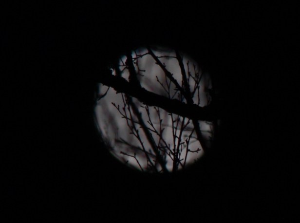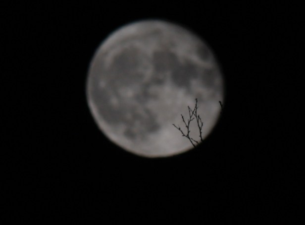 Det er ikke vårnatt nå, men månen er stor og gul. Jeg har forsøkt opp gjennom årene å få til et bra bilde med månen hengende i en kvist, men avstandene er jo så forskjellige, så det er ikke så enkelt for en amatørfotograf.