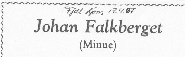 Johan Falkbergets meget gode venn, kyrkoherde Georg Granberg fra Funäsdalen, holdt minneord i dikts form. De var gjengitt i Fjell-Ljom 19.4.: