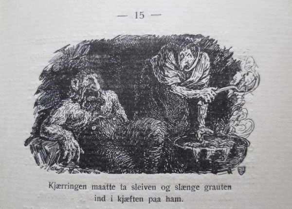 I jakten på illustrasjoner til dette innlegget havnet jeg på den gamle Jutul-Historier fra 1912. Den er illustrert av Otto Valstad og har noen fine eventyr. Den første utgaven ga han ut under pseudonymet ‘n Soplim-Tosten sjøl. I 1913 var forfatternavnet Johan Falkberget.