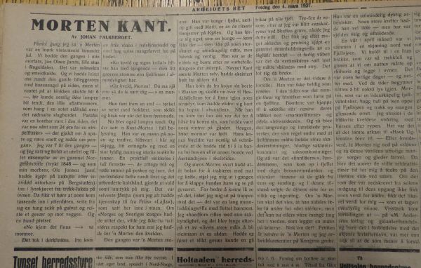 Begynnelsen av artikkelen om Morten Kant i Arbeidets Rett, kanskje er det mulig å lese: