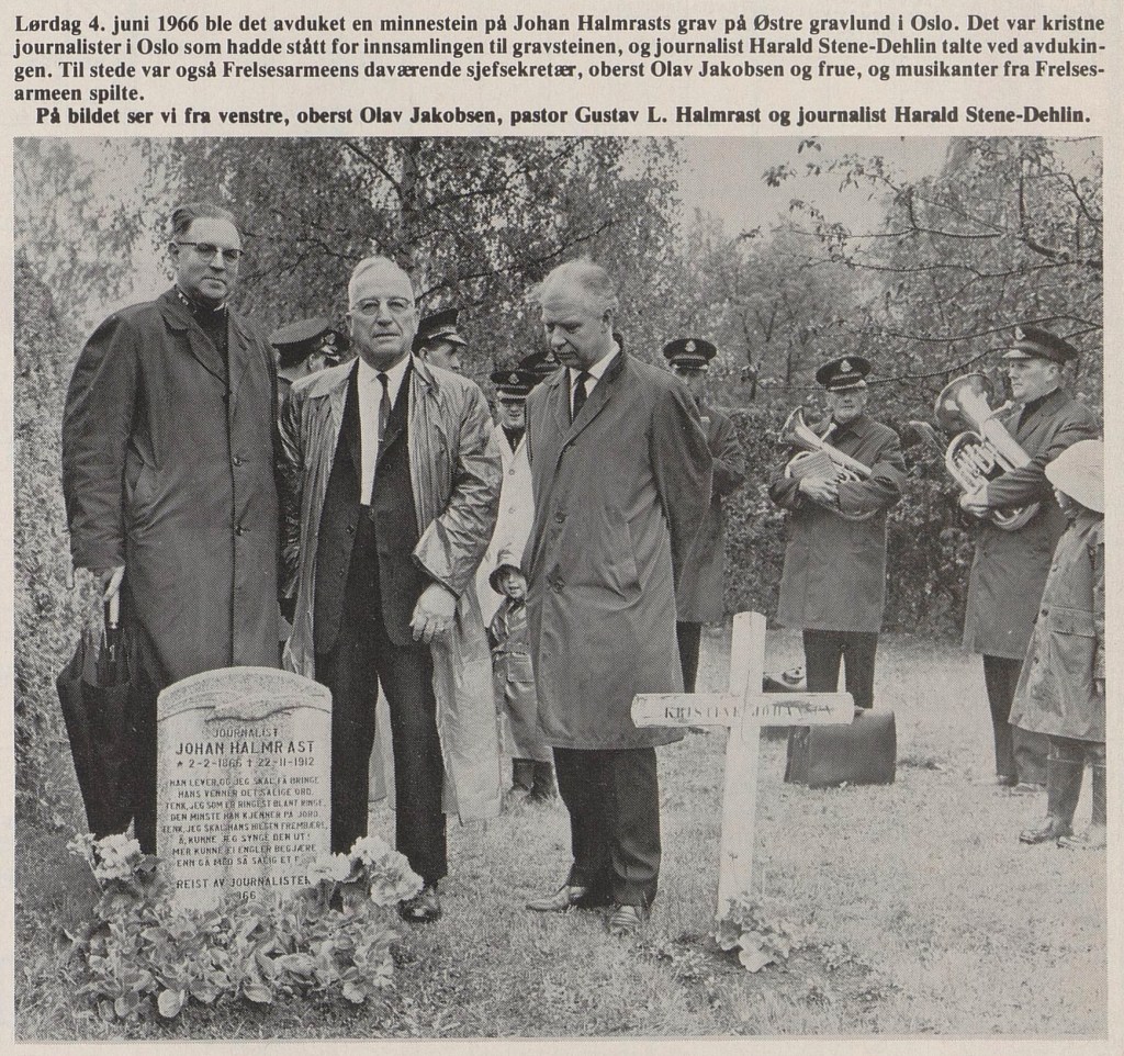 I 1982 hadde Krigsropet en ny artikkel om Johan Halmrast og Maria Magdalenas Jubel med mye av det samme innholdet, men her er det også et bilde fra 1966 da en minnestein på Østre gravlund ble avduket.